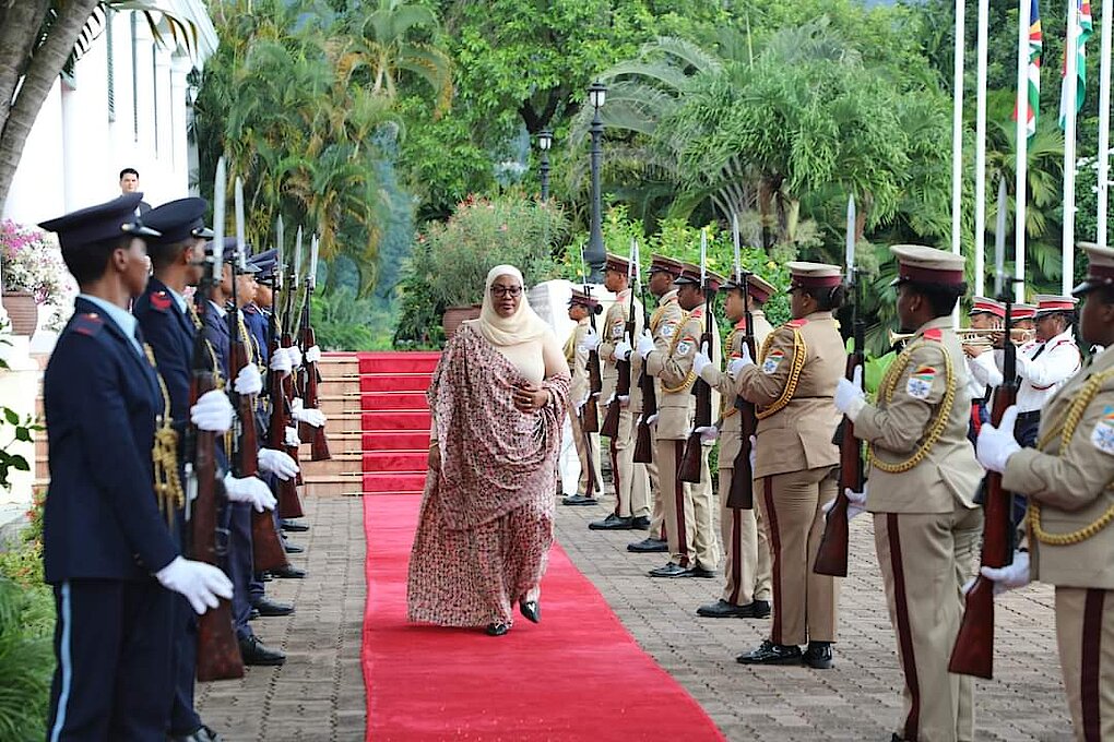 Ambassador Fatou Harerimana, High Commissioner of #Rwanda to #Seychelles with residence in Dar es salaam presented her Letters of Credence to His Excellency Wavel Ramkalawan, President of the Republic of Seychelles on February 20, 2024